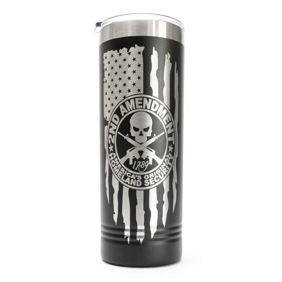 Our tumbler is expertly designed not only for aesthetic appeal but also for functionality. With its double-walled stainless steel construction, it keeps your cold drinks chilled and hot drinks steaming for hours. The detailed laser engraving ensures that the design won’t fade over time, making it a permanent accessory in your daily gear. It’s more than just a tumbler; it’s a statement piece that proudly showcases your support for the 2nd Amendment—America’s Original Homeland Security.