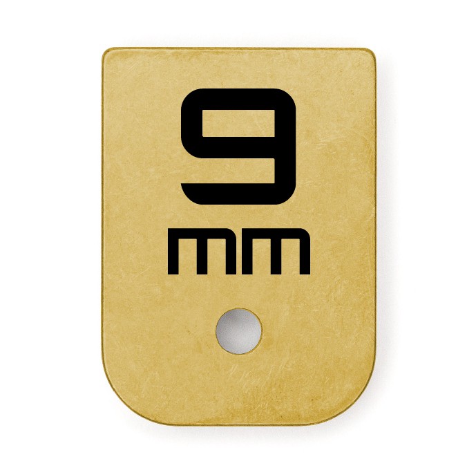 The 9mm Caliber Indicator baseplate is available in high-quality anodized aluminum for a lightweight and sturdy option, titanium for ultra-rugged performance, or brass for a polished, premium touch. With finish options including brushed, polished, or custom Cerakote colors, you can personalize this upgrade to match your firearm’s unique aesthetic. Designed for both full-size and slimline Glock pistols, this baseplate helps improve magazine handling while adding a touch of distinct functionality to your weapon.