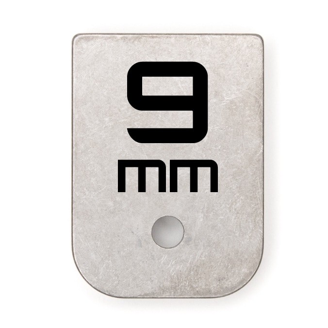 Keep your magazines organized and your firearm stylish with the 9mm Caliber Indicator laser-engraved magazine baseplate. Featuring a bold, oversized number “9” with “mm” engraved below it in a smaller font, this design serves as both a functional marking and a sleek enhancement to your Glock. Ideal for identifying your 9mm magazines quickly and easily at the range or during tactical situations, this baseplate combines practicality with a clean, professional look.