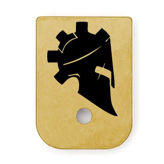 Custom Warrior Solution Spartan Helmet Laser Engraved Magazine Baseplate – Fits Full-Size & Slimline Glock Pistols – Anodized Aluminum, Titanium, or Brass